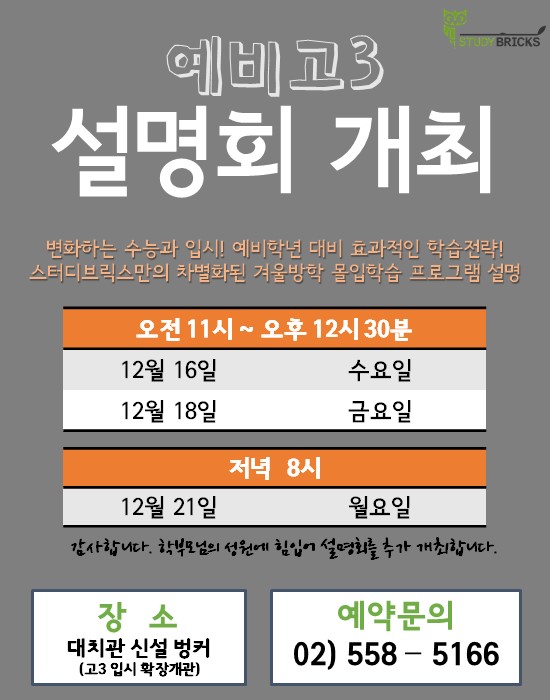 12¿ù 16ÀÏ(¼ö) / 12¿ù 18ÀÏ(±Ý) ¼³¸íȸ Àå¼Ò´Â